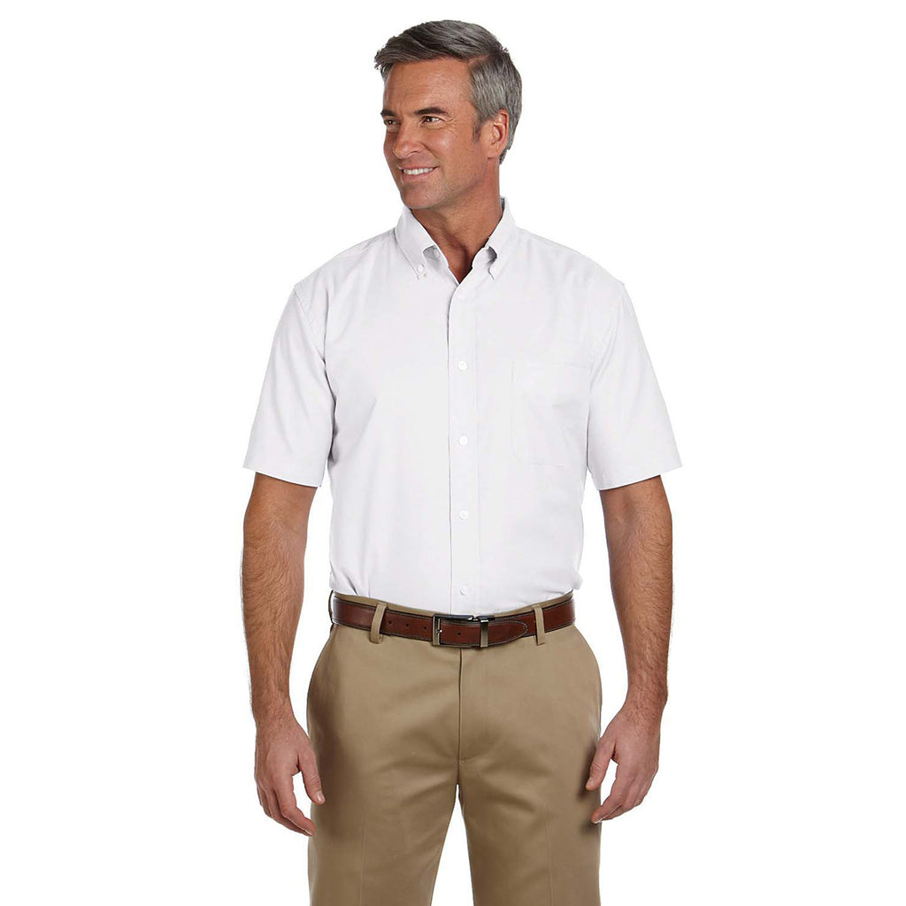 Harriton Men's White Short-Sleeve Oxford with Stain-Release