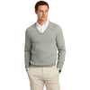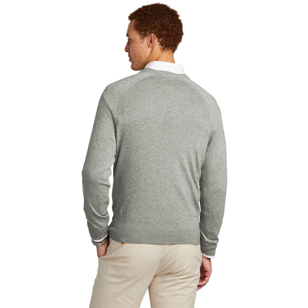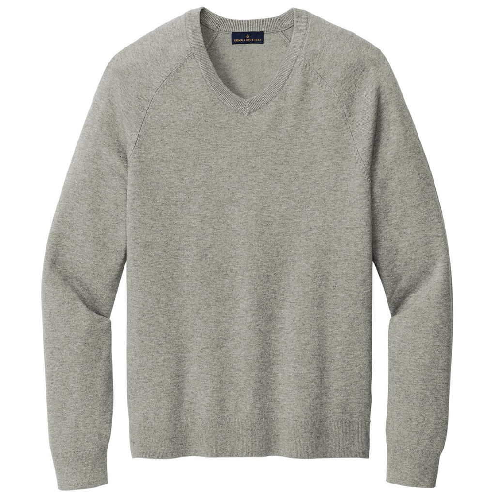 Brooks Brothers Men's Light Shadow Grey Heather Cotton Stretch V-Neck Sweater