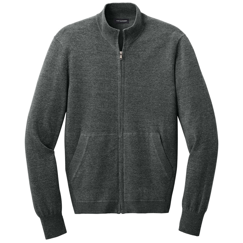 Port Authority Men's Charcoal Heather Easy Care Full-Zip Sweater