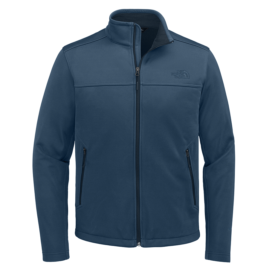 Design a corporate logo for The North Face Men's Shady Blue Chest Logo Ridgewall Soft Shell Jacket to create a custom gift or uniform for employees. The high-end, full-zip jacket offers a high wind resistant, water repellant finish that is made for outdoor work and play. Ideal for trade shows, those who work directly with clients, or outdoor events.This product cannot ship outside of the United States.