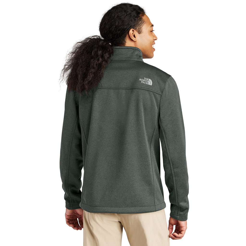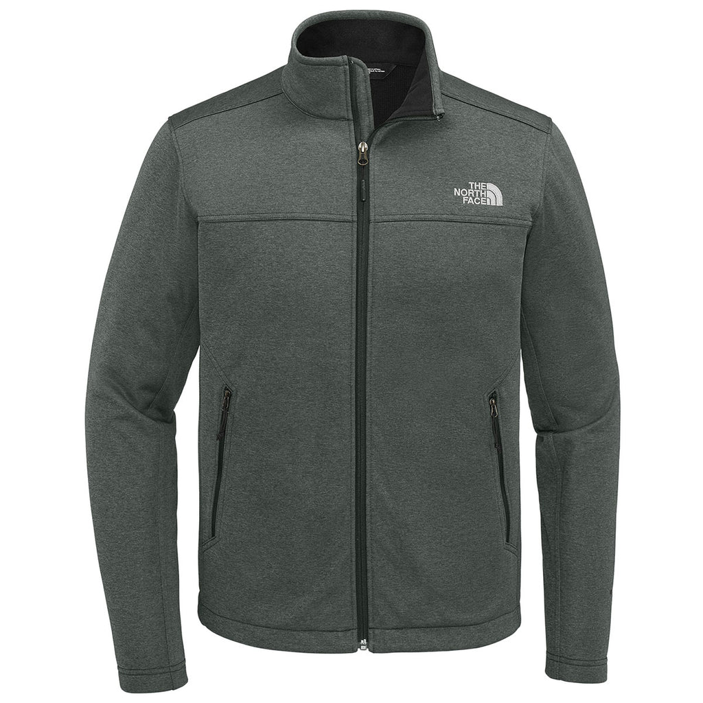 Design a corporate logo for The North Face Men's TNF Dark Grey Heather Chest Logo Ridgewall Soft Shell Jacket to create a custom gift or uniform for employees. The high-end, full-zip jacket offers a high wind resistant, water repellant finish that is made for outdoor work and play. Ideal for trade shows, those who work directly with clients, or outdoor events.This product cannot ship outside of the United States.