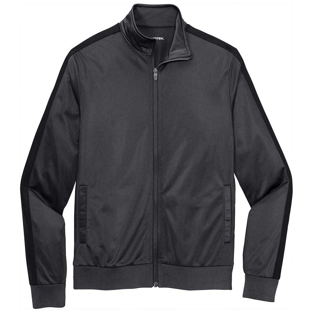 Sport-Tek Men's Graphite Grey/Black Tricot Track Jacket