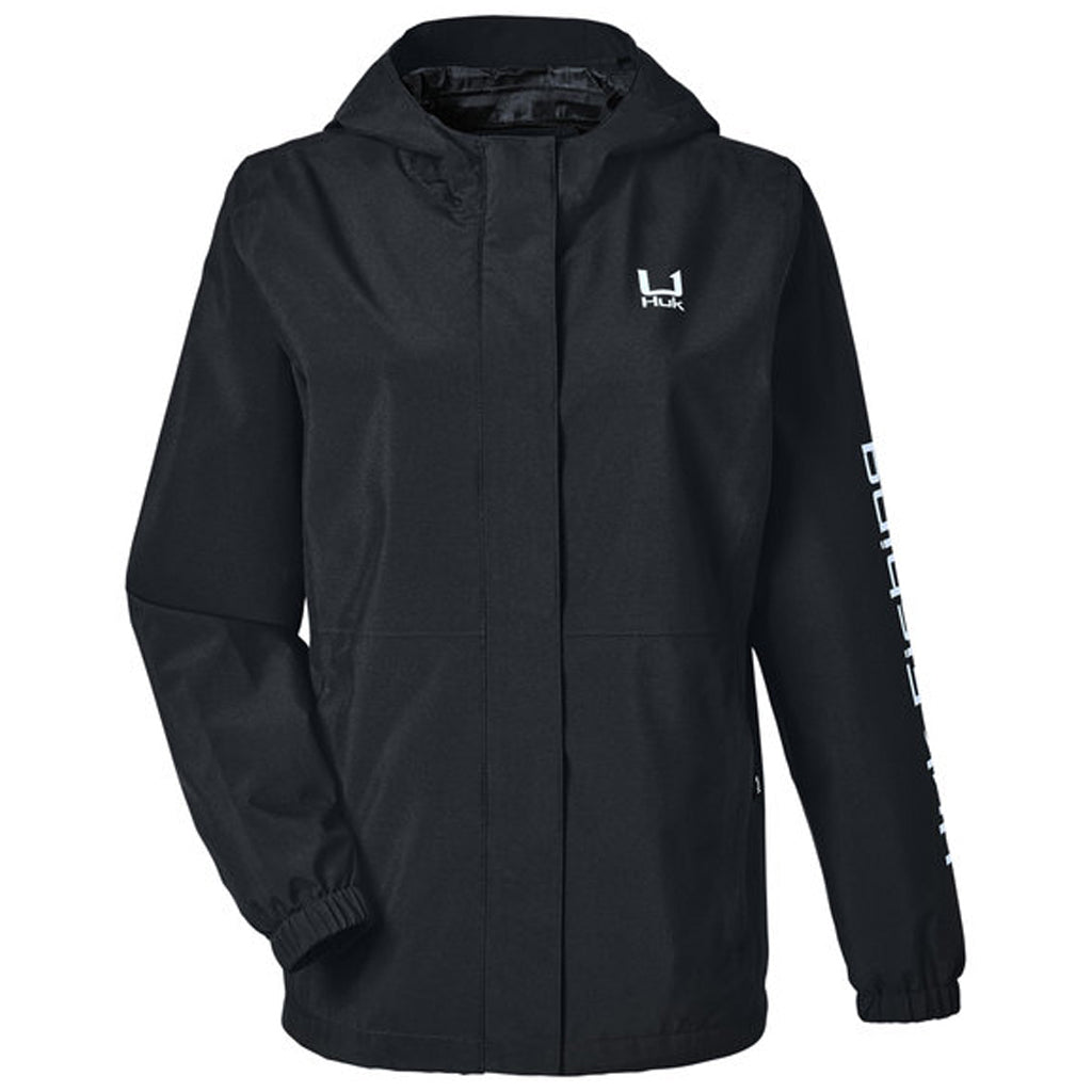 Enjoy a custom look with the HUK Women's Black Storm Rain Jacket. This stunning jacket is convenient and comfortable when the weather takes a turn. Perfect for a professional look for those working security, doing outdoor planning, or just enjoying the outdoors. A storm flap zipper and hand pockets add to the overall convenience.