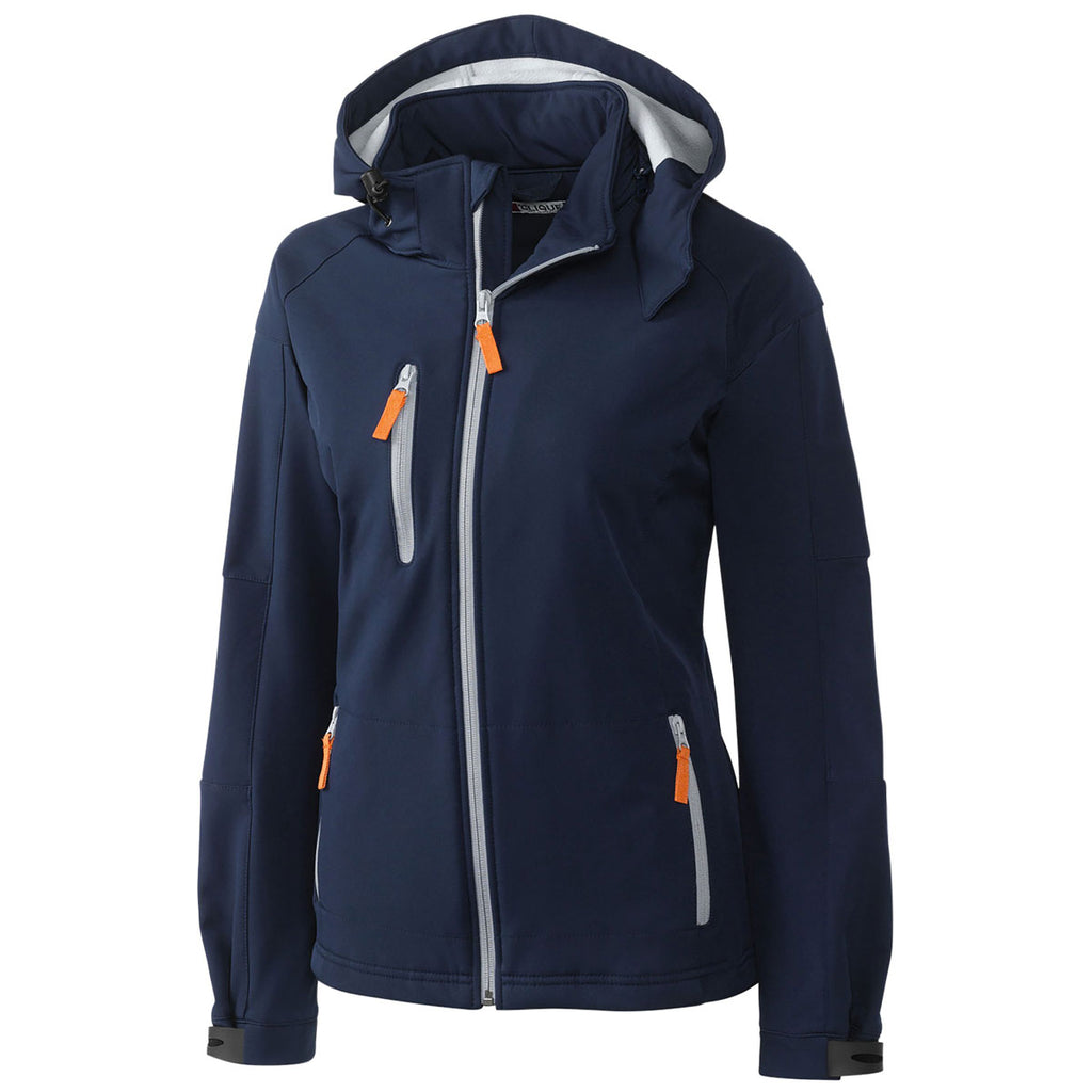 With a water resistant fabric, the custom logoed Clique Women's Navy Tulsa Jacket keeps you dry during a corporate sponsored golf tournament. Breathable to prevent the buildup of moisture, the versatile full zip jacket makes the ideal outer garment for weathering rainy camping trips. Attach your company logo to turn the stylish jacket into an embroidery marvel. With a custom logo, you increase recognition for your brand at industry trade shows. Adjustable Velcro cuffs give you more room to move your arms and hands to complete strenuous home improvement projects, as well as add more wood on a campfire.