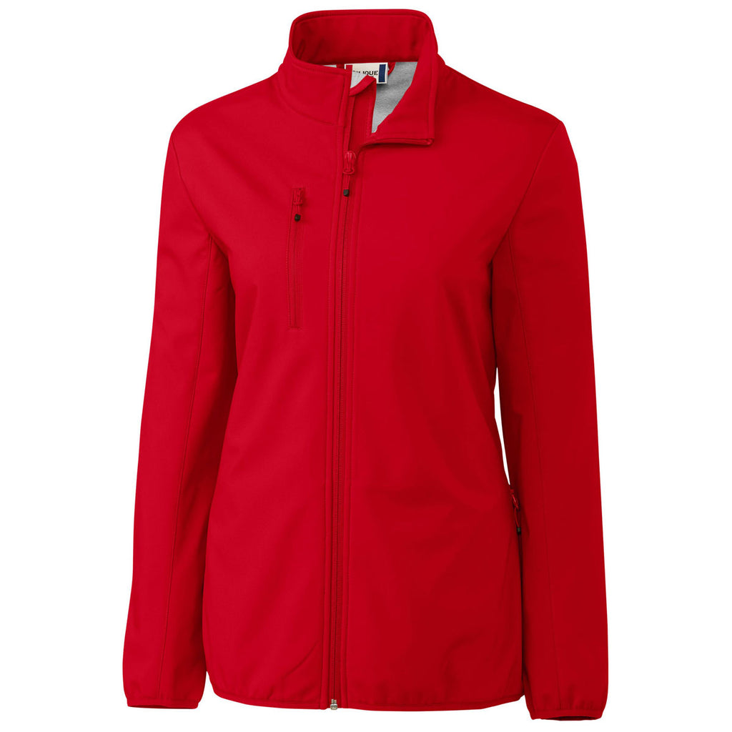 A touch of spandex makes the company logoed Clique Women's Red Trail Softshell perfect for professionals that spend plenty of time outdoors working and playing. Enjoy enhanced mobility, as you cut down tree limbs for a home improvement project or set up a tent for a weekend camping trip. The highly breathable softshell jacket quickly removes moisture to deliver supreme all day comfort. Add a custom logo on the large embroidery area for setting the marketing tone at the next sales conference. The mostly polyester fabric resists rips and tears to give you a softshell jacket that lasts for years to come.Corresponding Men's Style: Clique Men's Red Trail Softshell