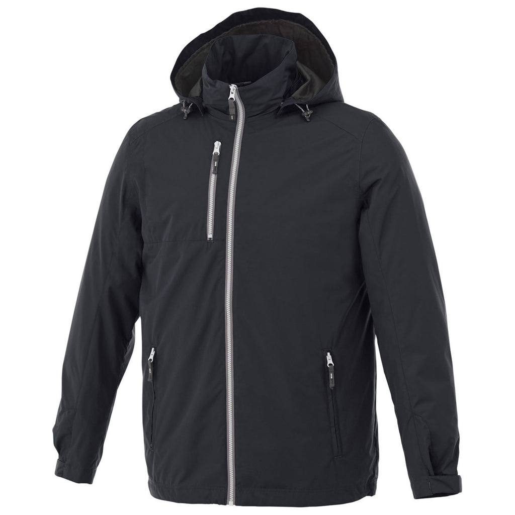 The Elevate Men's Navy Ansel Jacket with your custom company logo is an ideal present for your employees. This jacket is waterproof, has a breathable coating and water repellent finish which is ideal for wet, rainy spring or fall days. This rain jacket is designed with a detachable snap off hood, nice graphic drawcord, zipper with contrast tape and white teeth, adjustable cuff tabs with velcro closure and dropped back hem. Your employees will look great in this jacket while they are enjoying outdoor adventures. Include this jacket in your next corporate giveaway and let your employees know they are appreciated.Corresponding Women's Style: Elevate Women's Navy Ansel Jacket