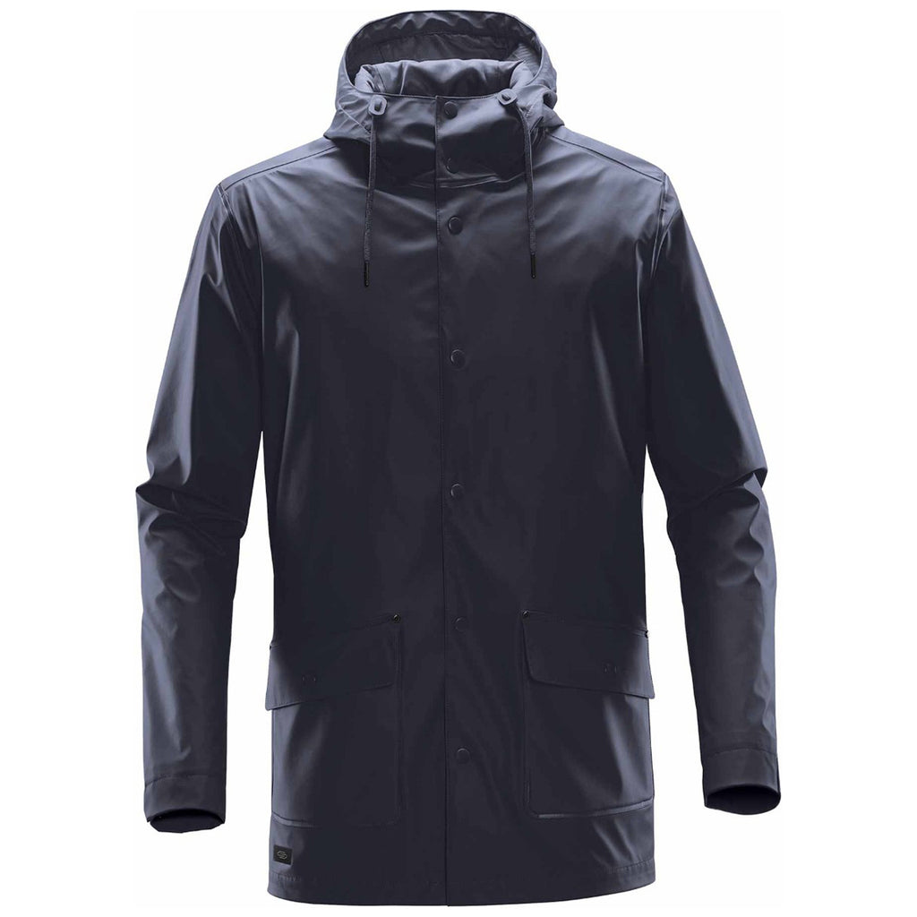 Rain happens, but the custom Stormtech Men's Navy Waterfall Rain Jacket will keep you dry and protected. Add a company logo screen print to the great fitting, mid-length, fully lined waterproof raincoat. The matte finish means this is an easy choice for any environment whether being used as corporate apparel or a day out with the family. Extras include welded waterproof seams, flapped snap closure hand pockets, adjustable snap cuffs, and snap back yoke for easy wear. The self-fabric waist belt means you will look your best, even when the weather is at its worst.Corresponding Women's Style: Stormtech Women's Navy Waterfall Rain Jacket