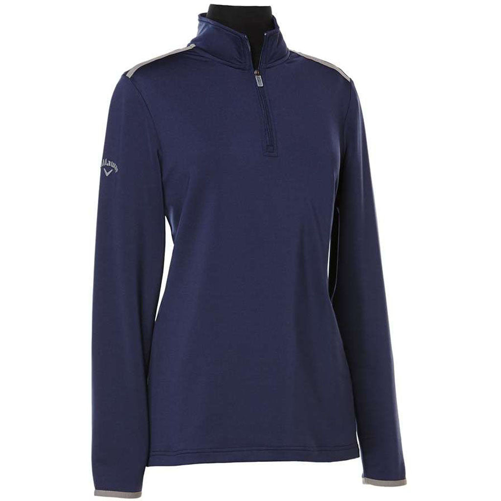 The 1/4-zip that includes a Callaway logo rubber zip pull barely tells the high-end fashion story for the Callaway Women's Peacoat 1/4-Zip Mock Pullover. Contrast binding details at the shoulders and cuff creates a dignified appearance for a highly durable clothing outer layer. Enjoy moisture wicking technology that ensures you never have to sweat the big stuff at work. Opti-Stretch technology incorporates interwoven spandex into the fabric to ensure optimal movement flexibility. Add your company logo to the large imprint area to reap the benefits of a walking brand advertisement. The pullover makes the consummate company gift for loyal patrons of your business.