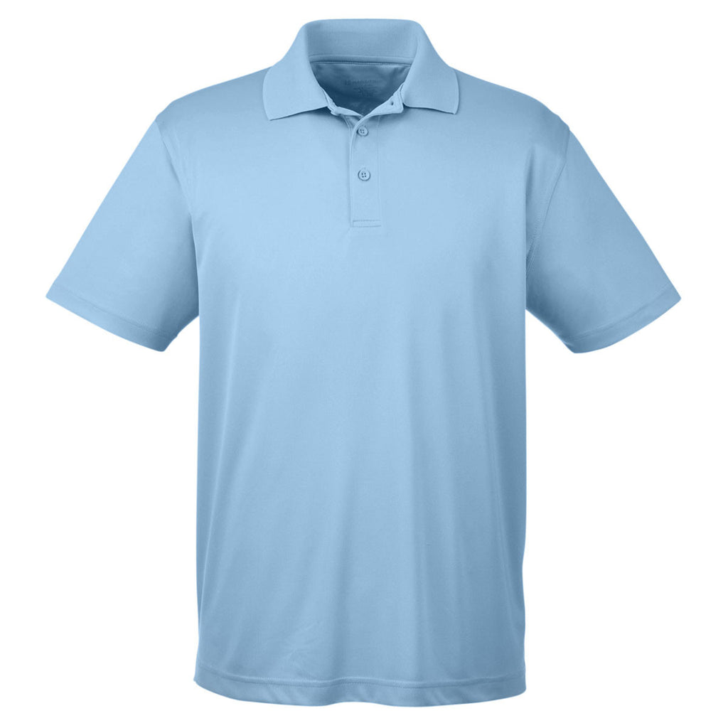 One-hundred rugged polyester prevents rips and tears from diminishing the fashion appeal of the Harriton Men's Light Blue 4 oz. Polytech Polo. Antimicrobial properties keep the polo looking and smelling fresh all day long. Quick to dry after a soaking rain, the sleek polo includes moisture wicking technology that cools the skin. Side seam stitches enhance durability, while the set-in sleeves offer a comfortable fit. The three-button placket and flat-knit collar present a professional appearance at formal corporate events. Attach your company logo on the large imprint area to heighten awareness of your brand in the community.Corresponding Women's Style: Harriton Women's Light Blue 4 oz. Polytech Polo