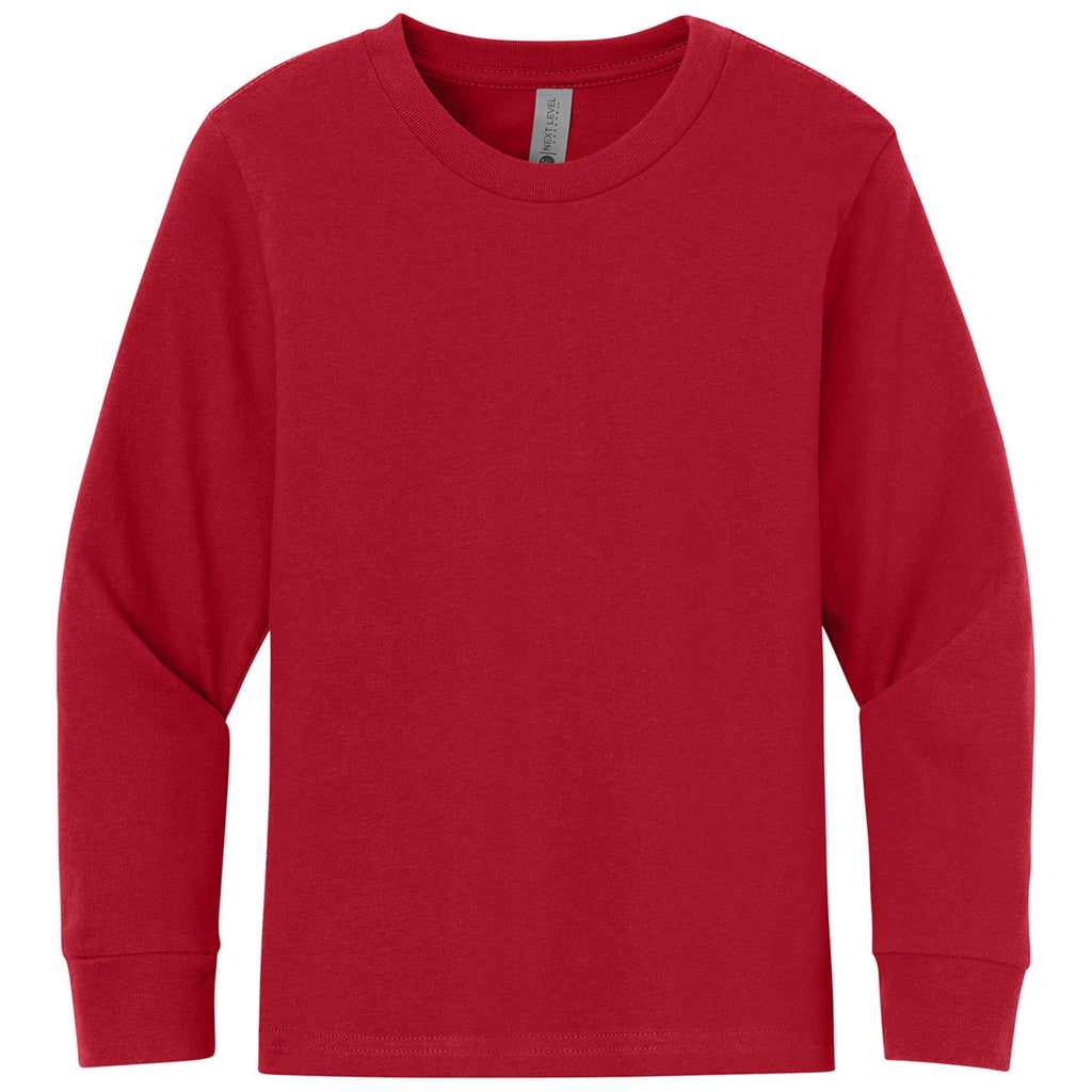 Next Level Youth Red Cotton Long Sleeve Tee