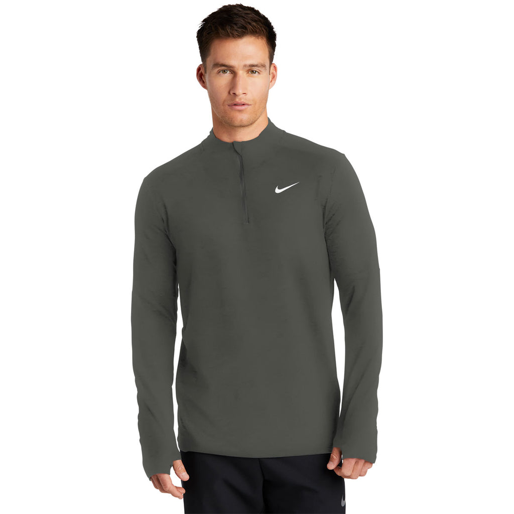 Embroidery will pop on the Nike Men's Anthracite Dri-FIT Element 1/2 Zip Top that delivers the all-utility warmth and comfort you desire. The sweat-wicking fabric functions to keep you drier while enjoying a morning run or preparing for the big event. Add a custom logo and wear this 1/2 zip to the next meet as warm-up gear or a layering element. Order today before time runs out.