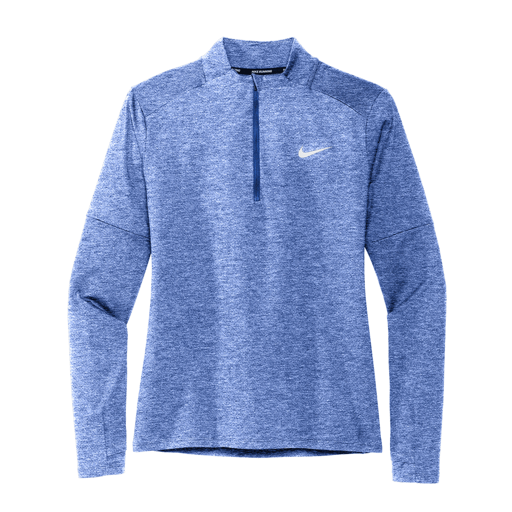 Add embroidery to the Nike Women's Royal Heather Dri-FIT Element 1/2 Zip Top to create a highly versatile piece that is and will continue to be a best seller. This 1/2-Zip is ideal as employee apparel with a company logo or add a custom logo to create a custom gift everyone will love. The back, mesh panel allows for breathability while the moisture wicking technology provides a dry cover-up for your toughest workout. Still, this cover-up keeps you warm. Easily layer this cover-up with a tank or tee to go from the gym to lunch with friends.