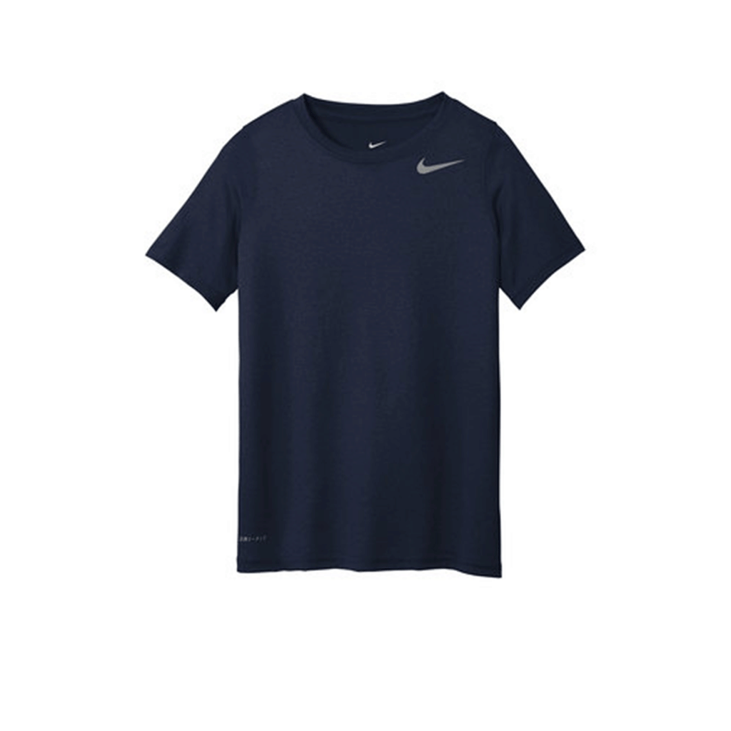 Create a custom team uniform with the Nike Youth College Navy Legend Tee. This youth version of the Legend tee is a Nike staple in athleisure apparel that can serve many functions. Add a company logo to use as a uniform for a sports team that you support or a custom logo to offer for younger people who are part of your organization or cause. The legendary tee offers Dri-FIT technology to wick away sweat whether playing the infield, enjoying a pick-up game at the park, or working out on your own. Highly durable with tag free comfort, this polyester jersey is lightweight and ready for whatever you do.
