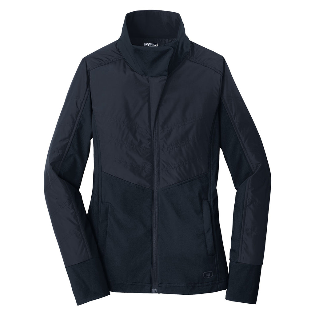 The 100% polyester woven shell makes the embroidered OGIO Endurance Women's Propel Navy Brink Soft Shell a must-have outer layer to ensure ideal comfort during winter. Wind and water resistant laminated film insert keeps you feeling fresh throughout the day. Core insulation allows you to go easy on the layering while still being comfortable. Partial storm flap and tip forward collar prevent a weather change from dampening your day. Add your company logo on the large imprint area for highlighting your brand at business seminars and conferences. With the classic style of this soft shell, those that receive it will want to continue wearing it year after year.