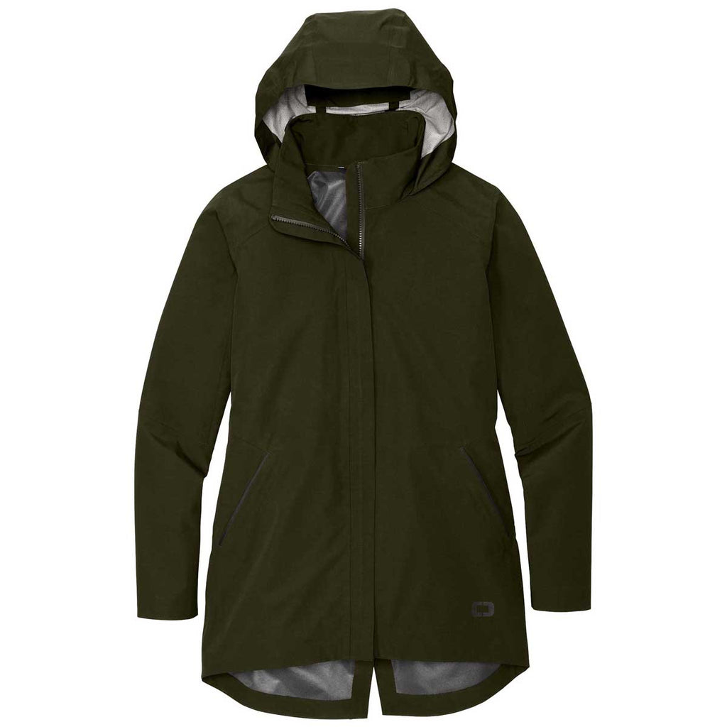 Do it all with a custom OGIO Women's Drive Green Utilitarian Jacket. This sleek, modern jacket is a show stopper in the parka length design, yet functional in the weather protection finish. Add embroidery in your design to create a custom gift that most will adore. The 100% poly shell is bonded to a water resistant film insert for both wind and water resistance. Breathable, this jacket has an adjustable, packable hood and black reflective taping details for that bit of extra.