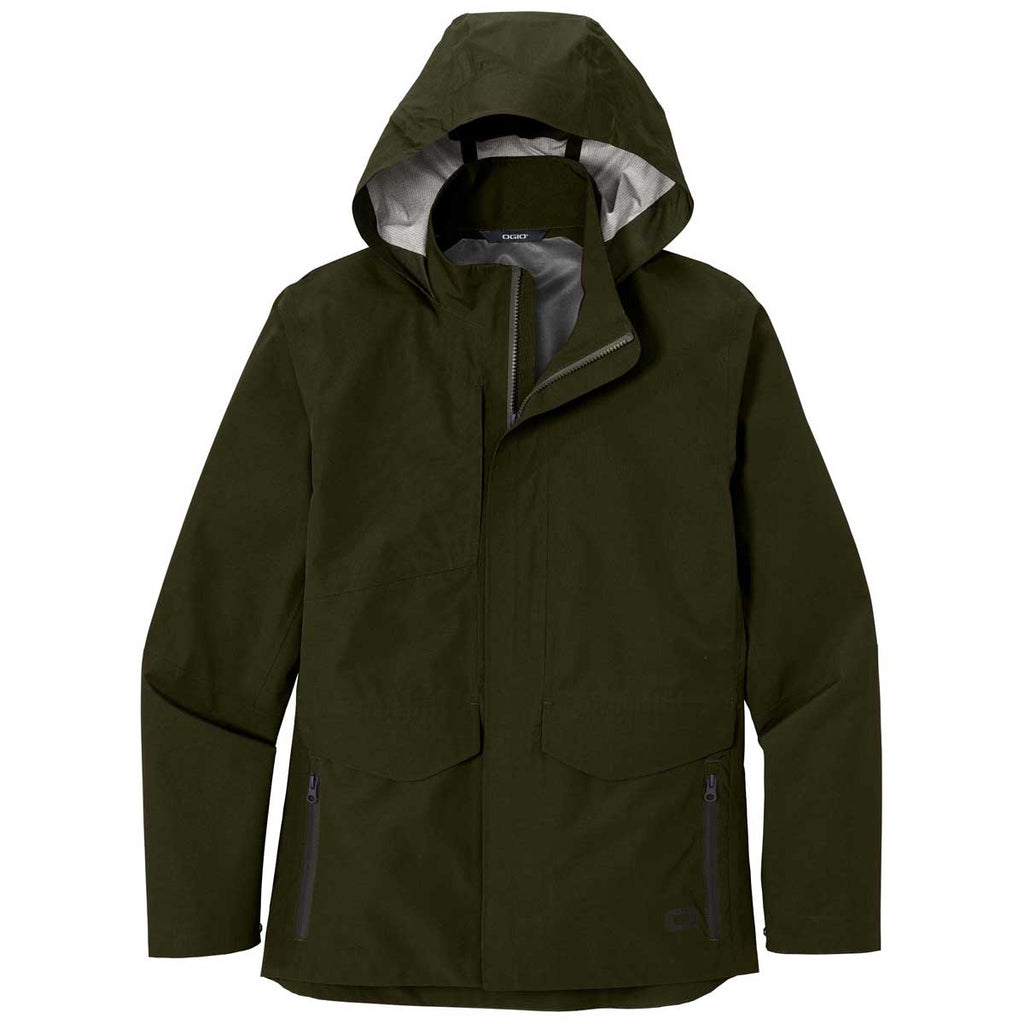 Add custom embroidery to the OGIO Men's Drive Green Utilitarian Jacket to create a unique look that is also highly functional. Made in a parka length, this fully seam sealed jacket is modern and sleek which can easily go from corporate apparel in an after hours meeting to a day with the family having fun. The DWR poly shell is bonded to water resistant film insert for wind resistance as well. An adjustable, packable hood is perfect for pop-up rain showers. Front pockets are ideal for small items which make this a great choice for a company logo so it can be used as an employee gift or uniform piece.