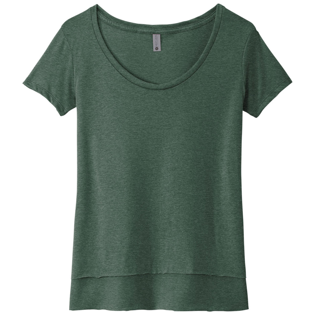 Amp up your tee collection with a custom Next Level Women's Royal Pine Festival Scoop Neck Tee. This takes the simple tee to the nest level with a scoop neck cut that provides flair. Add a company logo to use this as employee apparel or for some special employee event used for team or company building. Try out a custom logo to use for a team, organization, club, or just to add to your own wardrobe. The poly and ring spun cotton blend is soft, comfortable, and wearable with rib knit scoop neck and a relaxed fit. The raw edge creates an exaggerated drop tail hem for extra coverage.