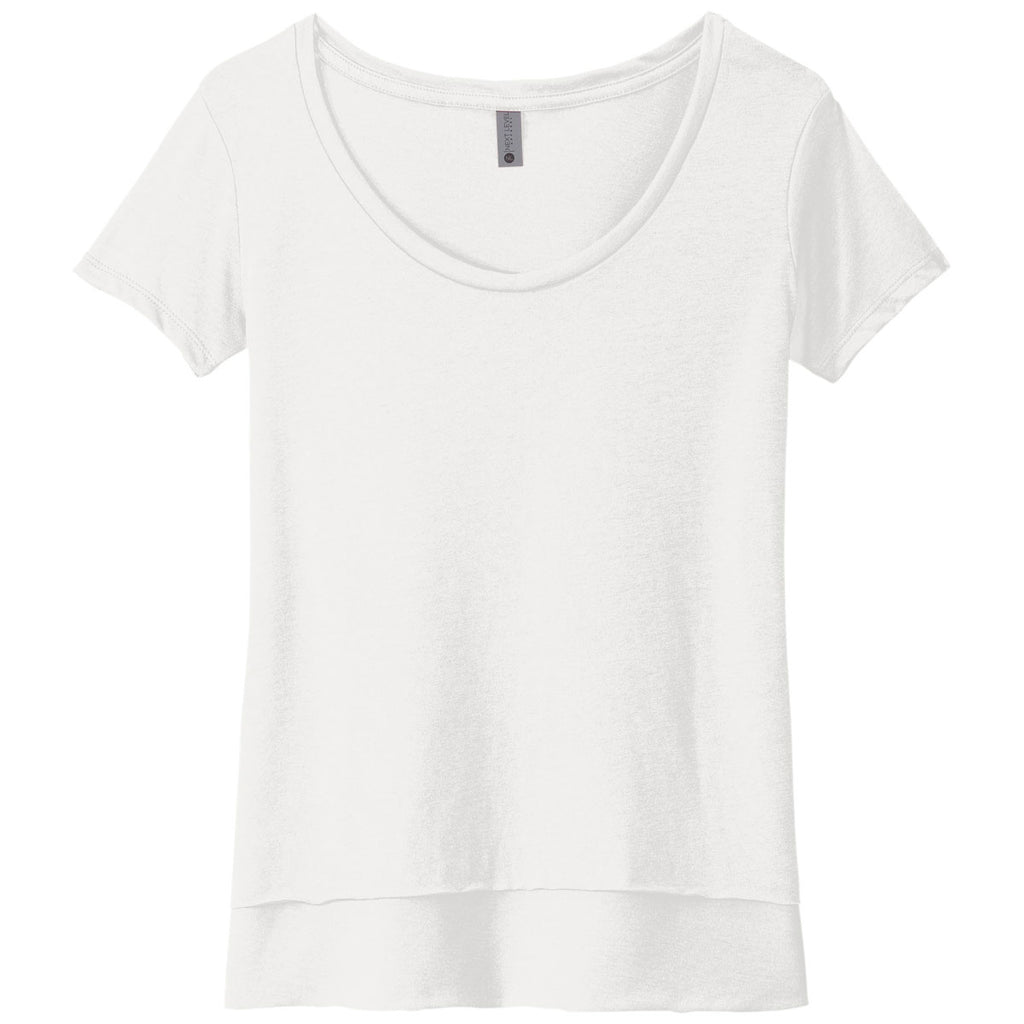 Amp up your tee collection with a custom Next Level Women's White Festival Scoop Neck Tee. This takes the simple tee to the nest level with a scoop neck cut that provides flair. Add a company logo to use this as employee apparel or for some special employee event used for team or company building. Try out a custom logo to use for a team, organization, club, or just to add to your own wardrobe. The poly and ring spun cotton blend is soft, comfortable, and wearable with rib knit scoop neck and a relaxed fit. The raw edge creates an exaggerated drop tail hem for extra coverage.