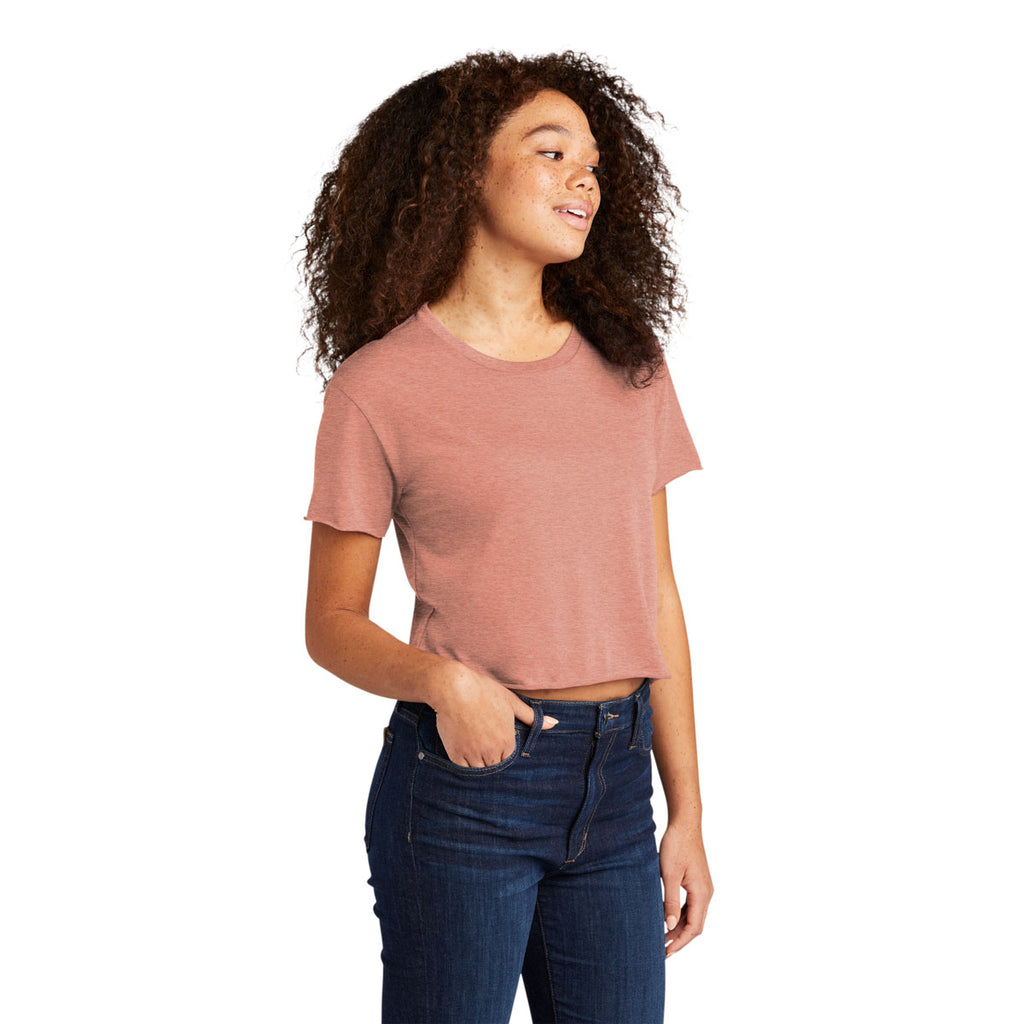 Design a custom screen print for the Next Level Women's Desert Pink Festival Cali Crop Tee to show off your fun side an go a little wild. The poly ring spun cotton blend tee is soft and ready for fun with a relaxed fit and cropped body. Add a custom logo to use as a promotional item or club item that people will love to wear and enjoy in warmer weather. Try a company logo to give as employee gifts or use as employee apparel where appropriate.