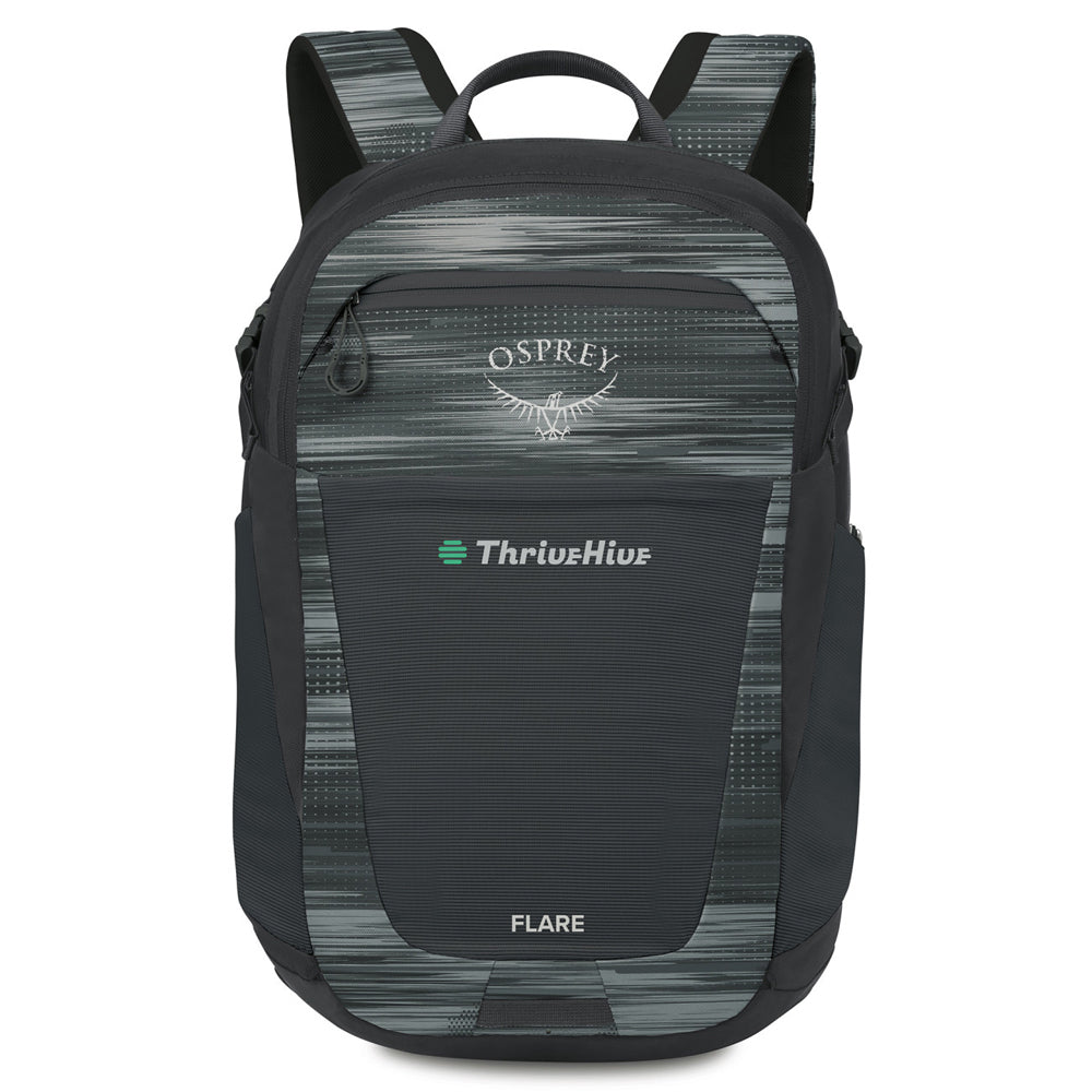Your company or team's custom logo will make a statement all over campus when it's added to the Osprey Flare Backpack. Great for employees, new hires, and students, this backpack comes complete with extras like multiple zippered pockets, padded shoulder straps, and a padded laptop sleeve.
