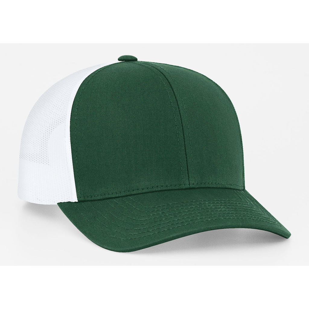 Turn the logoed Pacific Headwear Dark Green/White Snapback Trucker Mesh Cap into a corporate gift the loyal customers of your business will never forget. The lightweight, pro model shaped custom mesh cap contains cotton and polyester blended front panels that withstand the rigors of athletic competitions. Wear the versatile branded cap outdoors performing home improvement projects. The trucker mesh back encourages the flow of air to cool your head on the warmest days of the year. Add a custom logo to the large imprint area located on the front of the cap to expand the presence of your company in the community.Highlights