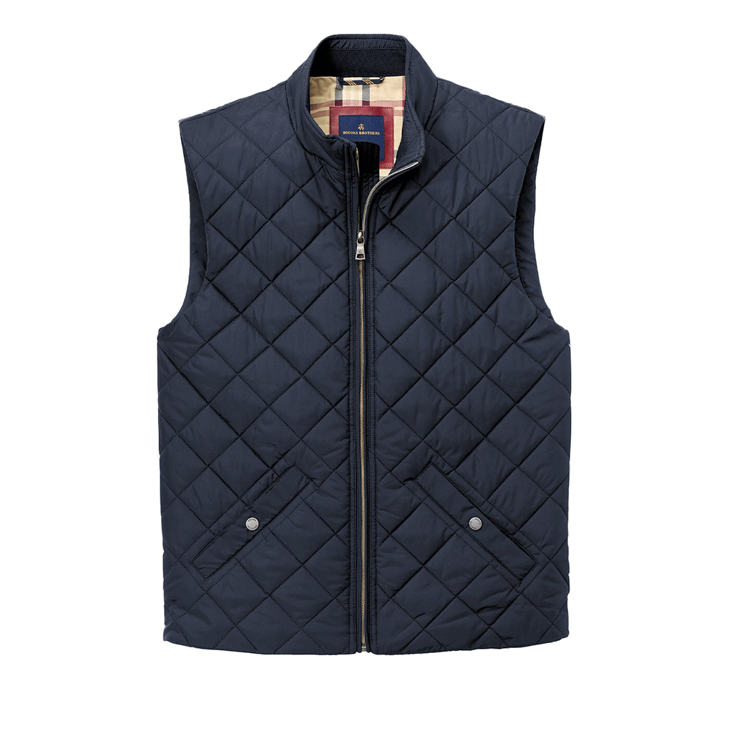 Stand out with a custom embroidered Brooks Brothers Men's Night Navy Quilted Vest. Metal front zipper and details make for the trademark suaveness and sophistication made for any boardroom or tradeshow. Have your entire team stand out with this high-quality, professional vest.