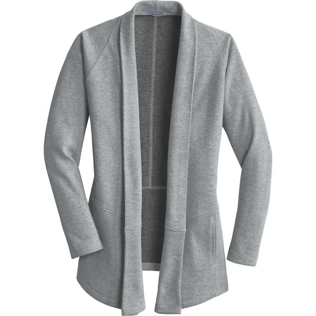 Port Authority Women's Medium Grey Heather/Charcoal Heather Interlock Cardigan