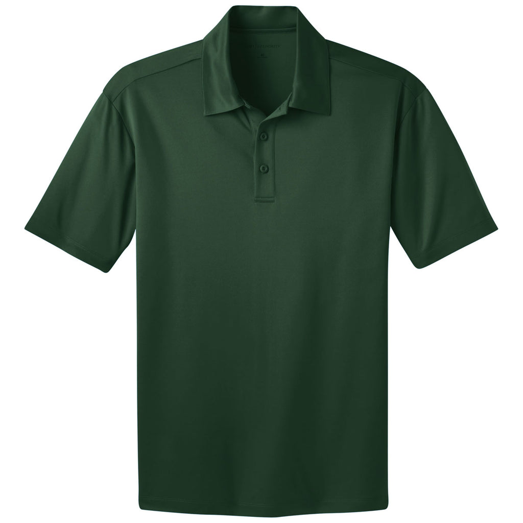 What happens when silky comfort meets well-constructed durability? When they meet in one polo shirt, you're left with the Port Authority Men's Dark Green Performance Poly Polo. The shirt is designed to stay both durable and comfortable, wicking away sweat in the summer and resisting shrinkage in the washer. In fact, this tag-free polo makes for fine employee uniforms because it maintains its color and its quality even after repeated wearing. it's the kind of shirt most people should have in their wardrobe at home, except they don't realize it. Buy one for yourself and you'll see what a well-constructed polo shirt can do for you. Self fabric collar.Corresponding Women's Style: Port Authority Women's Dark Green Performance Poly Polo