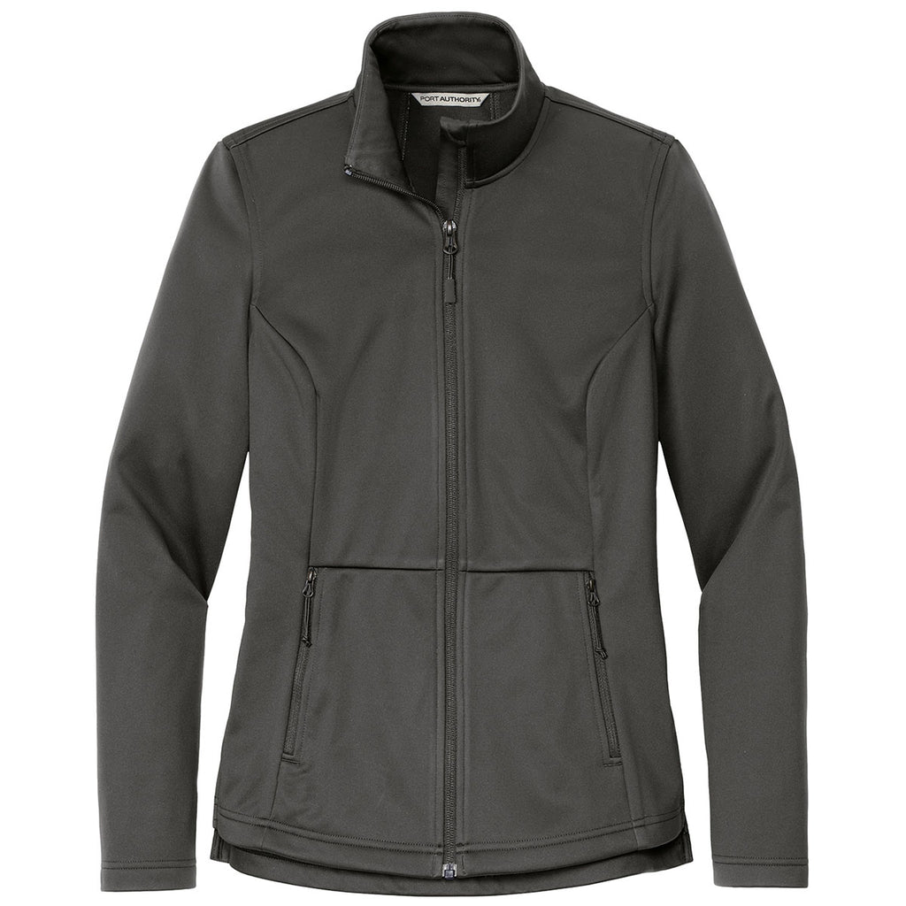 Add embroidery to the Port Authority Women's Grey Steel Flexshell Jacket to create a sleek look for the woman on the go. This polyester knit jacket is water-repellent, breathable, and slightly longer for extra coverage when it counts. The simple design adds versatility to this jacket, which can be worn to work, special events, or for general wear. Place an order today.Corresponding Men's Style: Port Authority Men's Grey Steel Flexshell Jacket