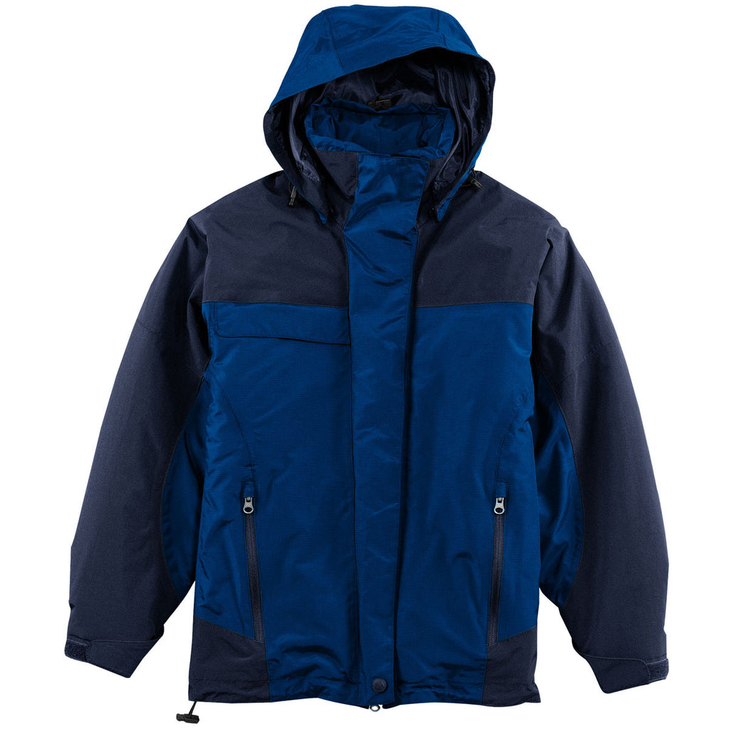 Want a lesson in protection from the weather? The Nootka people would be glad to provide it. The Port Authority Women's Regatta Blue/Navy Nootka Jacket takes some lessons from people who have figured out how to stay out of the rain without staying indoors. There's the 1500MM fabric waterproof rating thanks to a 100% ripstop nylon shell. There's plenty of insulation to keep you dry and warm even when the rain starts turning into sleet. And there's a storm flap and zip-off hood for maximum comfort. The only thing you could argue this jacket is missing is your company's logo on the front, making it an ideal winter/spring/autumn employee uniform.Corresponding Men's Style: Port Authority Men's Regatta Blue/Navy Nootka Jacket