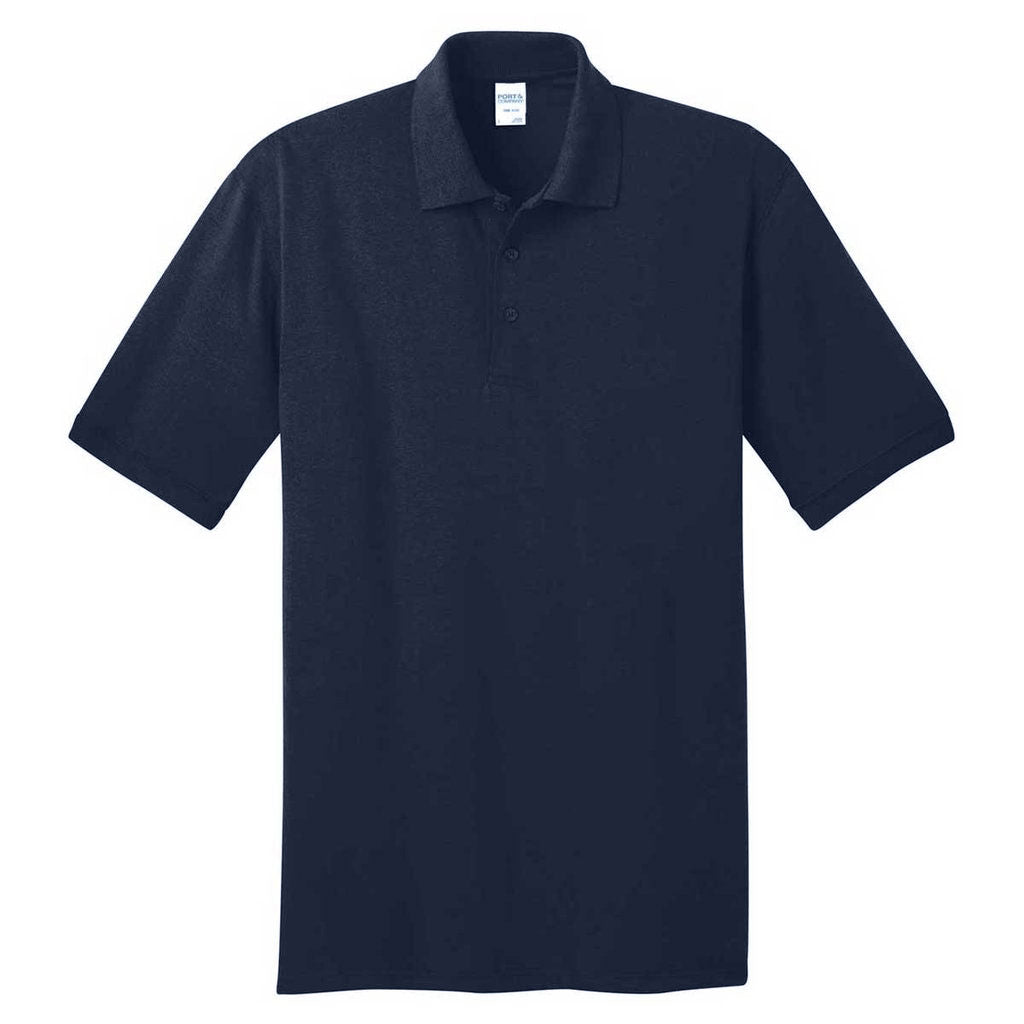 Energize your summer uniforming with this solid-hued style polo shirt crafted from a cotton-polyester blend that provides you with free movement and keeps you comfortable throughout the day. Treated with Soil Release for easy cleanups. It can be easily paired with contrasting chinos, cargoes or denim for an effortless look and style. Double-needle stitching hem means durability. With an emblazoned logo or branding message, this Port & Company Men's Deep Navy Tall Core Blend Jersey Knit Polo is perfect for employee's uniforms to enhance professionalism, foster company's corporate identity, raise awareness and to develop a sense of brand credibility and identity.Highlights