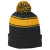 Sport-Tek Stripe Iron Grey/White Pom Pom Beanie