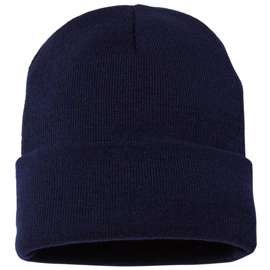 Choose your embroidery for the Sportsman Navy Jersey Lined 12" Knit for a fun and fashionable look that can serve many purposes. The acrylic exterior with polyester jersey lining will keep you warm if worn for skiing, hiking, or general outdoor wear, but this beanie can also be embroidered with a company logo to use as part of a uniform as needed. Also ideal for those who work in cooler weather, yet need to be recognized as belonging to a company this cuffed beanie is a must have as employee apparel.Highlights