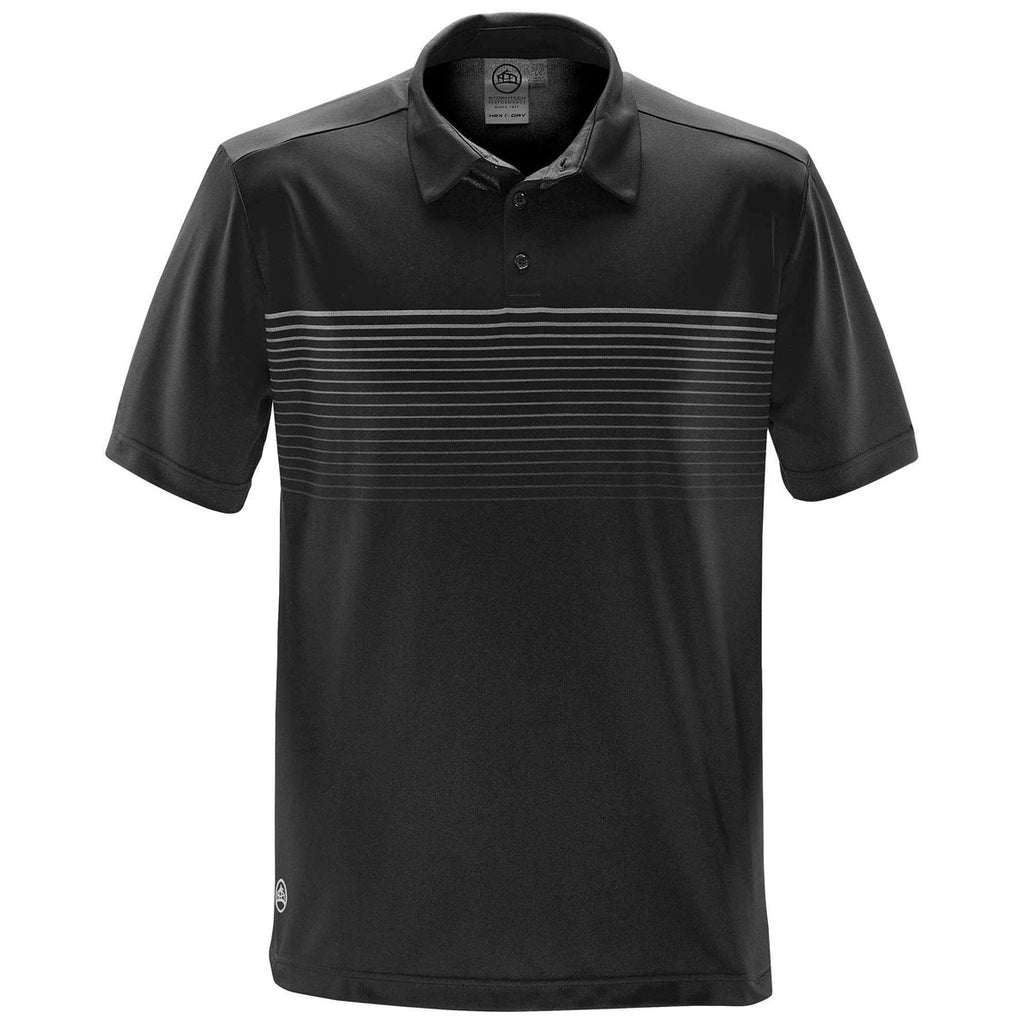 Put a smile on the face of your accomplished company team by giving away the custom logoed Stormtech Men's Black/Titanium Wavelength Polo. As far as polos go, the Wavelength style from Stormtech offers optimal unrestricted movement, which makes it perfect to wear for high energy sports. H2X-DRY moisture wicking technology keeps everyone playing in the company golf tournament cool under the collar. Ultraviolet ray protection prevents the blistering sun from causing skin damage. Add a logo on the large embroidery area to generate buzz for your company at business seminars. The super soft fabric resists rips and tears to give you a chic polo to wear for years to come.Corresponding Women's Style: Stormtech Women's Black/Titanium Wavelength Polo