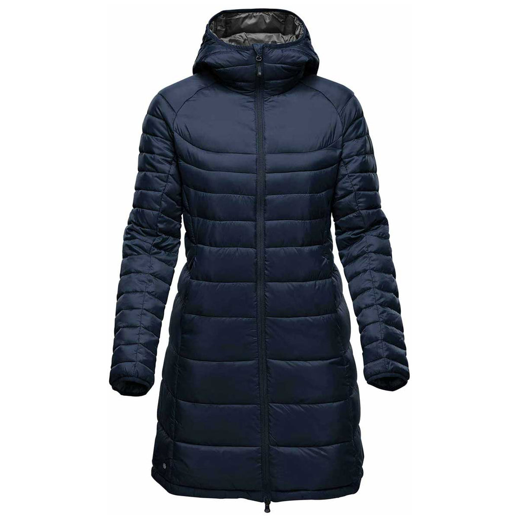 Brave the cold in a custom logo Stormtech Women's Navy/Graphite Labrador Parka. Enjoy an outdoor adventure in the jacket known as a magician. The ultimate puffer jacket can be custom embroidered to look great while keeping you warm with the full coverage hood and ultralight polyfill baffles. The best part comes when you no longer need to wear the jacket on your outdoor adventure. All you have to do is fold the jacket into its own pocket and it converts into a travel pillow. This is great for those who travel between climates and do not wish to carry a bulky jacket. Add a company logo to offer these to those who travel for the company or offer them as high-end gifts that will garner lots of use.Highlights