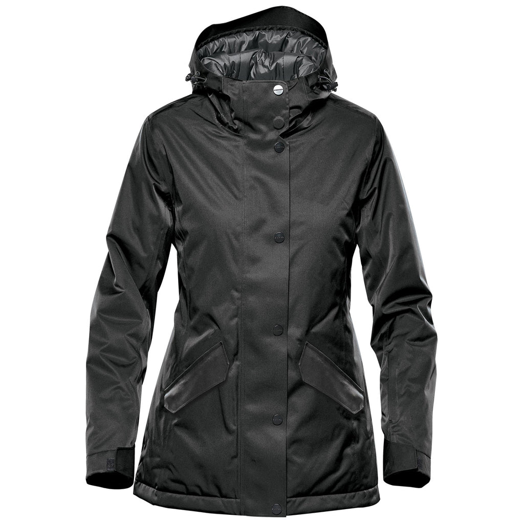 Add a custom logo to the Stormtech Women's Charcoal Zurich Thermal Jacket for a sleek look that will look good when running errands, on the slopes, or anything in between. Perfect as a custom gift for anyone who has to face inclement weather, this jacket is a perfect choice for extreme weather conditions. The waterproof, breathable jacket offers a face shield, storm flap, and plenty of pockets to keep small items secure and safe. Add a company logo to use as employee gifts for those who work outdoors year-round. Fashionable enough to serve well in urban environments, but great for outdoor adventure.Corresponding Men's Style:Stormtech Men's Charcoal Zurich Thermal Jacket
