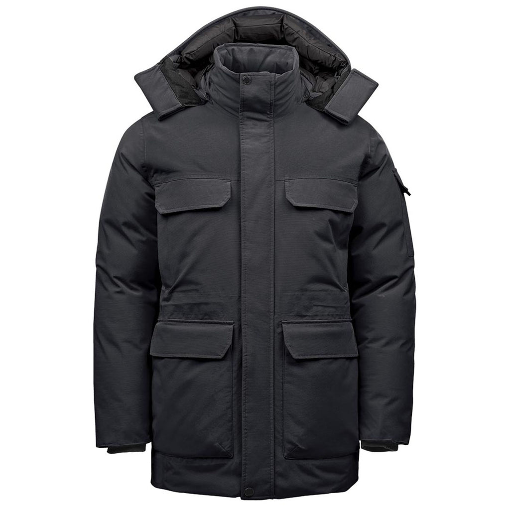 Stormtech Men's Black/Granite Denali Parka with a custom logo offers extreme comfort in the extreme cold. Delivering protection from the elements whether trekking through the woods or commuting to work, this parka is ready to face the day. Multiple pockets, a hood, and a storm flap make this a must-have. Place your order today.Corresponding Women's Style: Stormtech Women's Black/Granite Denali Parka