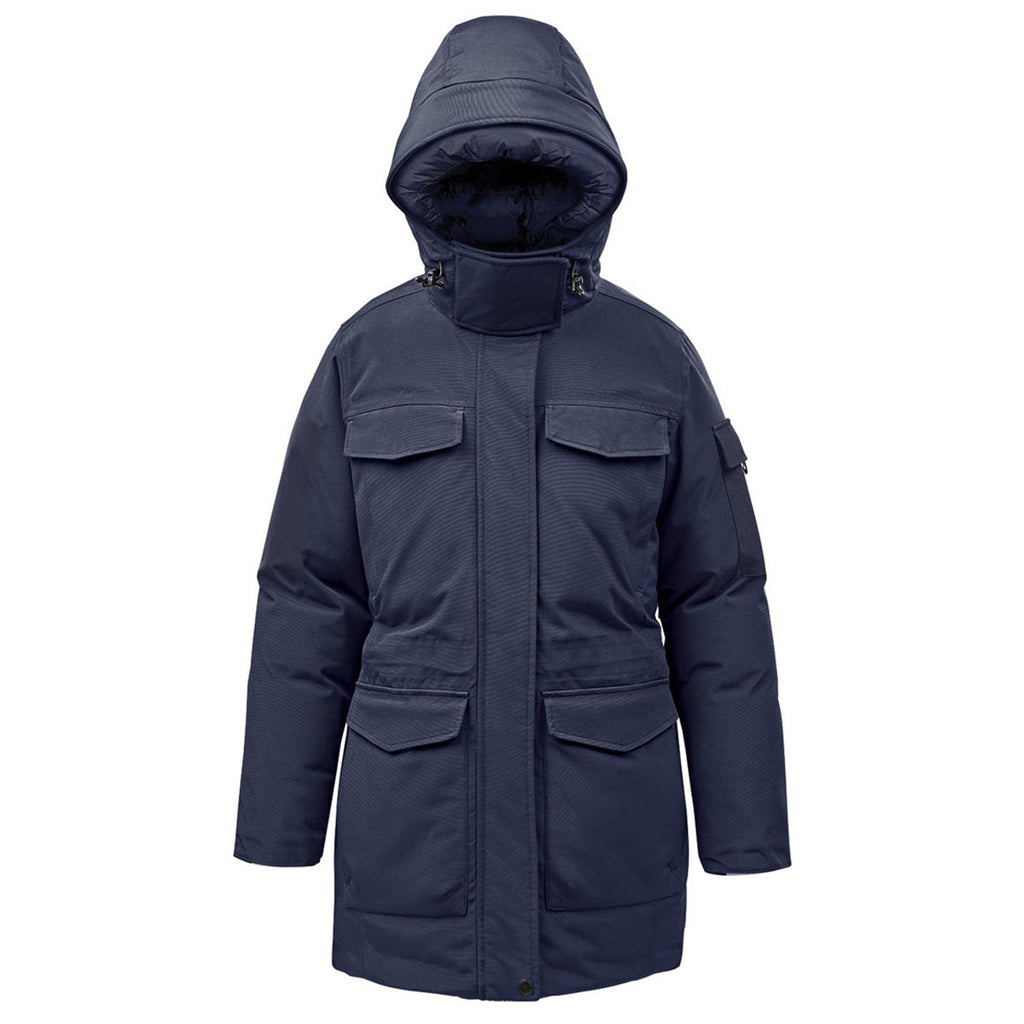 Add a custom logo to the Stormtech Women's Midnight/Midnight Denali Parka to face the extremes of weather in high fashion. The Arctic Explorer design is ready for outdoor adventure, but can easily keep you toasty on your morning commute. The addition of multiple pockets, a hood, and a storm flap means you can hit the slopes or work outdoors with ease.Corresponding Men's Style: Stormtech Men's Midnight/Midnight Denali Parka
