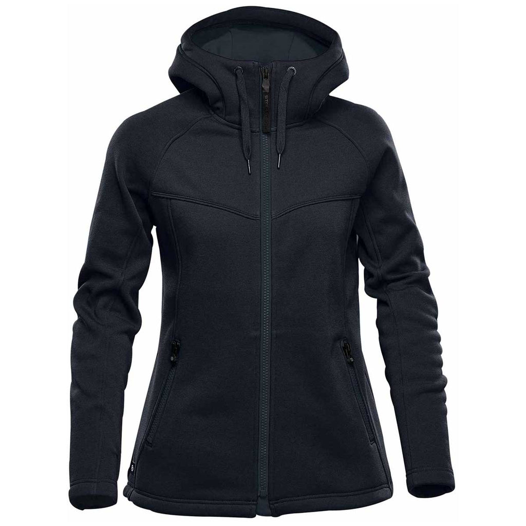 Stand out in a crowd in a custom embroidered Stormtech Women's Navy Logan Performance Hoody. The bold look of this hoody with a complementary zipper on the front and pockets makes it perfect for a great outdoor adventure. Created from a premium quality polyester outer layer that is bonded to Sherpa fleece, this hoody was built to last. The fully lined scuba hood offers added protection on this hoody that can carry your company logo or corporate embroidery with pride and flair. Perfect as a corporate gift or as end of the year gifts for employees who have given their all, this well-made hoody will be enjoyed.
