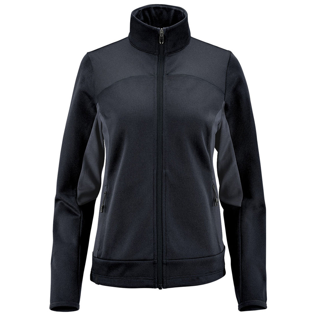 Enjoy the versatile custom Stormtech Women's Midnight/Dusk Appaloosa Knit Jacket for lightweight protection on cooler days. This jacket with contoured side panels creates an interesting silhouette that is also fashionable. The soft fleece will protect you while camping, hiking, commuting to work, or going out for the evening; the choice is yours.