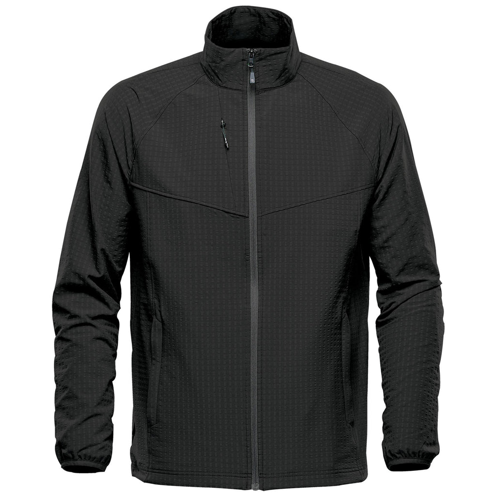 Enjoy a custom look with the Stormtech Men's Black Kyoto Jacket. This unique jacket has a hard faced waffle backed fabric that traps pockets of warm air on the interior to protect you from cold weather. Advanced stretch technology allows for freedom of movement to keep you moving, even when working outdoors. Add a custom logo to create a logoed apparel line for your business or a company logo to give as employee gifts for the next holiday or special occasion. The superior range of motion paired with enhanced breathability keeps you comfortable whether running errands, enjoying the great outdoors, or hanging out with friends after work.Corresponding Women's Style:Stormtech Women's Black Kyoto Jacket