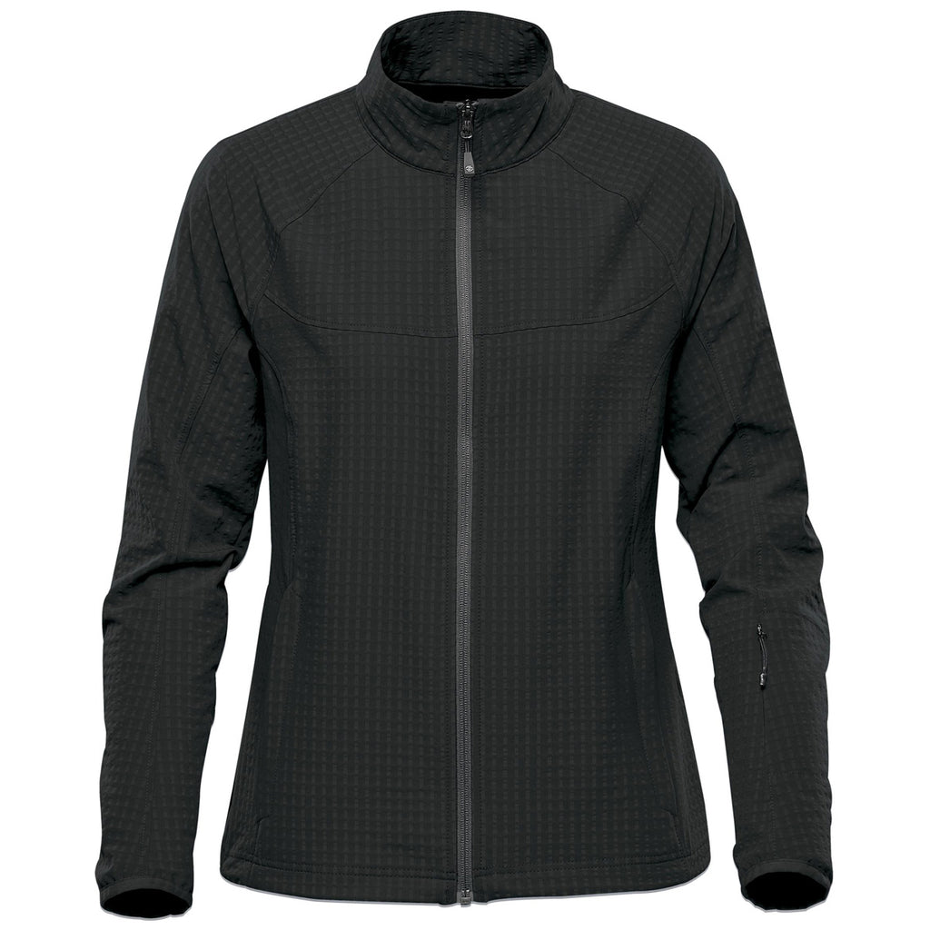 Create your own custom embroidery for the Stormtech Women's Black Kyoto Jacket. This gorgeous jacket with a futuristic feel has a hard-faced waffle backed fabric that traps warm air pockets on the interior to protect you against cold weather. Add a custom logo to create a gift everyone can enjoy for many seasons to come or a company logo to give as employee gifts. Great for a logoed apparel line or simply to add to your own wardrobe. Water resistant, breathable, and perfect for everything from working out to a hike in the mountains, this jacket is a true must have.Corresponding Men's Style:Stormtech Men's Black Kyoto Jacket