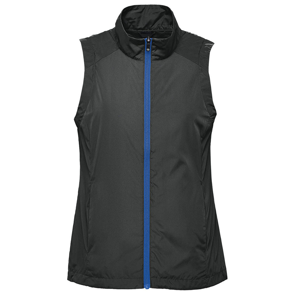 The Stormtech Women's Black/Classic Blue Pacifica Vest with the custom embroidery of your choosing will make a highly versatile custom gift that everyone can enjoy. The ultra lightweight and compactable wind vest is ideal when Mother Nature is being difficult. If you are planning a hike or camping trip or even working out outdoors this vest is great for mild weather to keep your core protected. A sleek way to update uniforms with a company logo, this vest is great for those who are out front and seen by customers. The vest is versatile and only limited by your imagination. Place an order today.Highlights