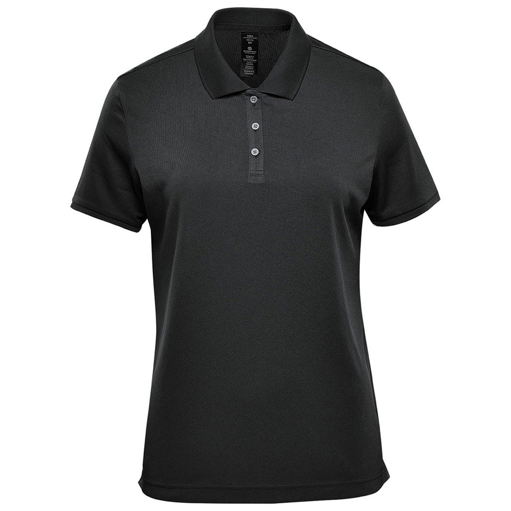 Look and feel great in the Stormtech Women's Black Sirocco Sports Polo with embroidery in your custom design. This polo provides a high quality look but is built to last with durable polyester pique and moisture management to help maintain comfort. Add a company logo to use as uniforms for those interacting with customers or pair with a jacket to utilize as corporate apparel. The athletic silhouette of the polo makes it great for after game interviews and meetings with those in charge. Place an order today to make sure these polos are part of your logoed apparel line.