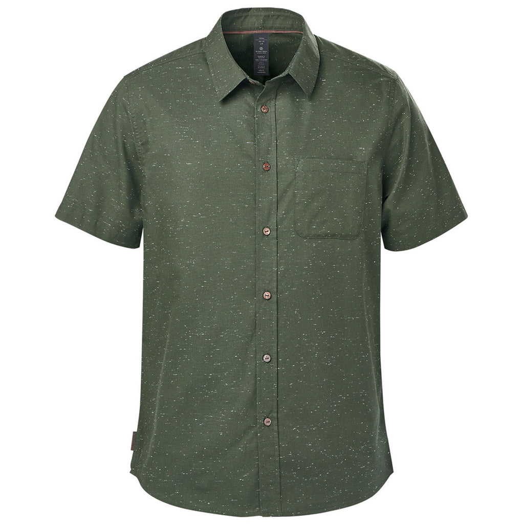 Your company's custom logo or design will always take center stage when it's added to the Stormtech Men's Earth/White Skeena Short Sleeve Shirt. Clean lines and a heathered slub fabric make this an elevated take on a classic short-sleeved button down. Coconut buttons add a stylish finishing touch.