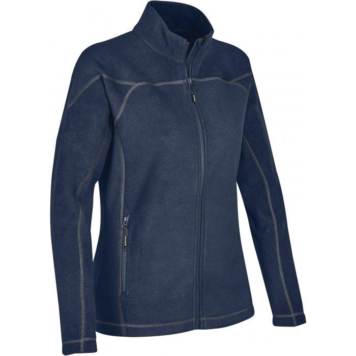 Looking to add your logo to a jacket they'll enjoy wearing every day? Check out the Stormtech Women's Navy Reactor Fleece Shell. A lightweight zippered jacket that's perfect for chilly days, it features eye-catching contrast stitching and a modern fit. Add your company logo or custom design and turn it into a high-quality team uniform or corporate gift.Highlights