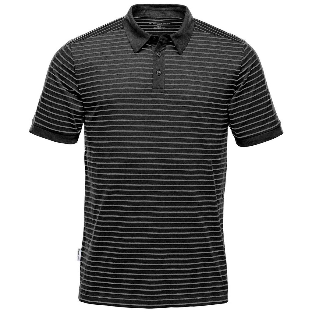 Stand out in a custom Stormtech Men's Black/Grey Heather Railtown Polo with stripes. The contrasting sleeves and collar on this classic polo style add to the uniqueness of the overall piece. A year round basic, this polo can be dressed up as corporate apparel or dressed down for an evening with friends. Add a company logo to use as employee apparel that is clean and professional while remaining comfortable. Ideal for the golfer in your life, this polo would look great on the course or driving range.Highlights