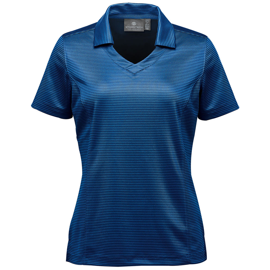 Stormtech Women's Navy Gulf Stream Polo with embroidery will turn heads whether worn at work or play. Made of a mechanical stretch fabric so movement is not impeded, this polo offers superior comfort, moisture wicking technology, snag resistant fabric, and UPF sun protection for whatever happens to be on your schedule. Add a company logo to use as corporate apparel when paired with a jacket or to wear alone when the meeting moves out to the driving range. Try out a custom logo for special events, trade shows, and even custom gifts that will be cherished.Corresponding Men's Style:Stormtech Men's Navy Gulf Stream Polo