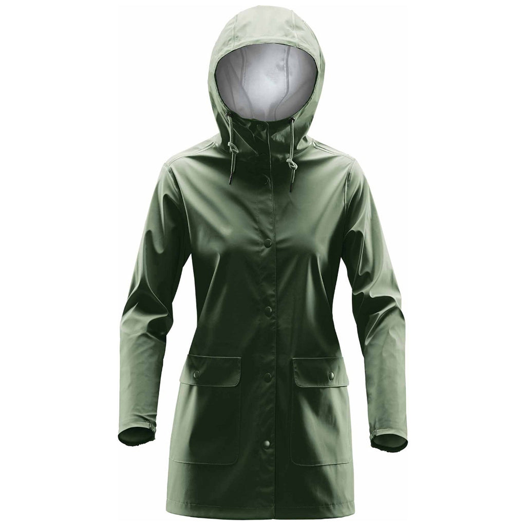 Brave the rain in comfort and style with a custom Stormtech Women's Earth Squall Rain Jacket. Add a company logo screen print to the great fitting, extra-length, fully lined waterproof raincoat. The matte finish means this is an easy choice for any environment whether being used as corporate apparel or a day out with the family. Extras include welded waterproof seams, flapped snap closure hand pockets, adjustable elasticized cuffs, and underarm and back venting for easy wear. The classic style means you will look your best, even when the weather is at its worst.Corresponding Men's Style: Stormtech Men's Earth Squall Rain Jacket
