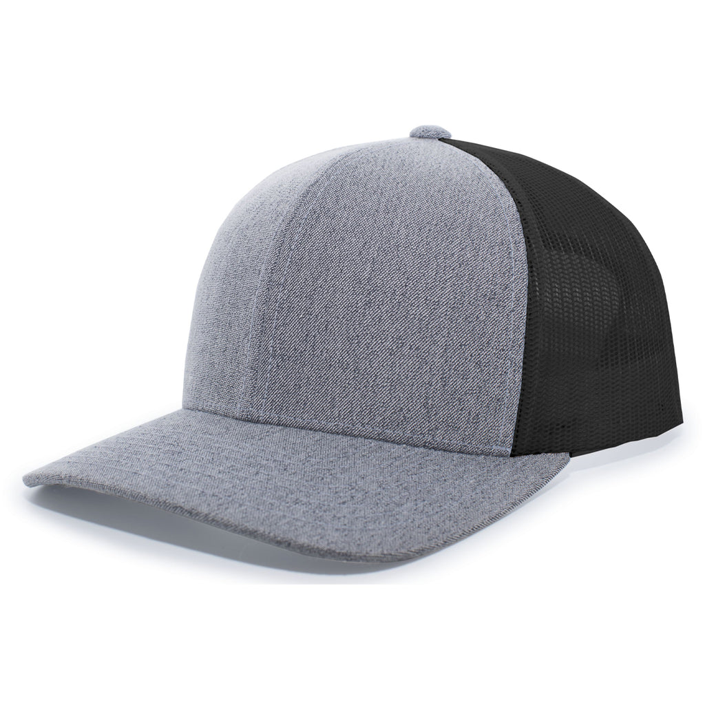 The logoed Pacific Headwear Grey Heather/Black Snapback Trucker Mesh Cap includes a snap back adjustable closure that ensures a snug, yet comfortable fit throughout your busy day. The pre-curved visor means you are ready to go for the next company softball game. Pro stitched finish enhances the visual appeal of the cap, as well as guarantees you enjoy high performance use for years to come. The structured crown creates a refined appearance that makes the cap shine everywhere you go. Attach your corporate logo to generate buzz for your company at outdoor professional networking events.Highlights